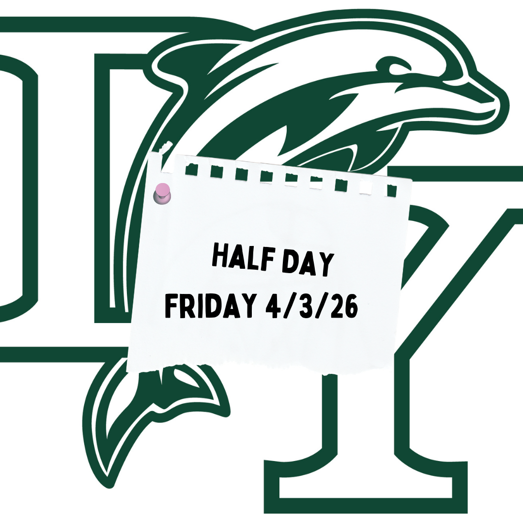Dear Dolphin Families,This is a reminder that Friday, April 3, 2026, is a Half Day for all students and staff.Dismissal Times:DYHS: 10:25 AMDYIMS: 11:15 AMEHBI, MES, SAE: 12:10 PM